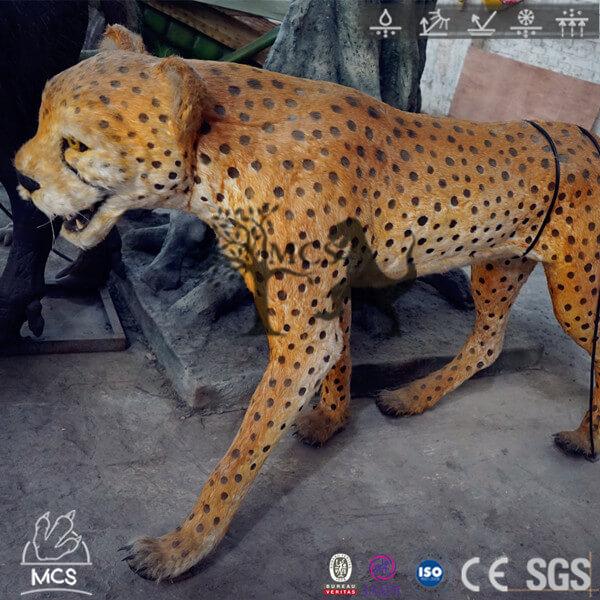 The robotic cheetah is one of the most popular park attractions in theme parks. The realistic animatronic cheetah model can be used for tourists to take photos in amusement parks by creating new theme areas for animatronic animal exhibitions, compared to other animals, with a small proportion of head structure. This cheetah model we pay great attention to their muscular lines, showing it as a hunter. Place this Cheetah model in natural scenery to arouse people's love for nature.