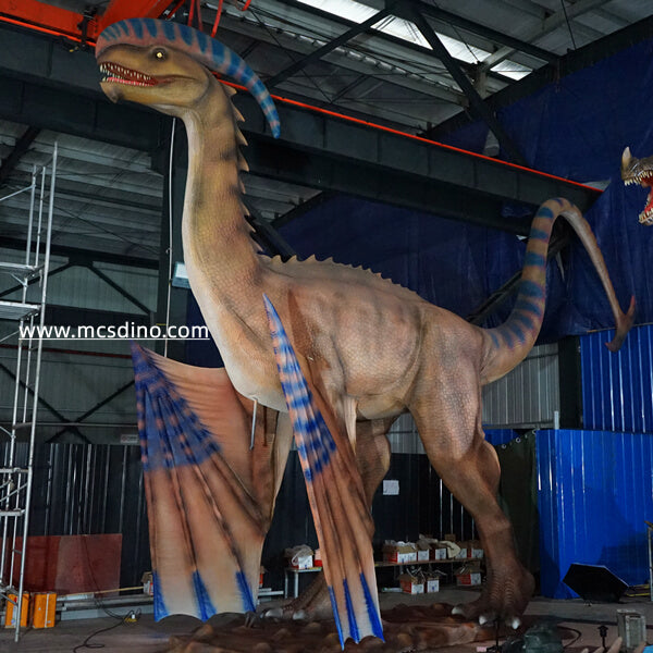 This blue-purple dragon robot is very interesting. It is a simulation model of a Ladon dragon with two feet and wings. According to legend, the animatronic dragon has strong poison, so we gave it a huge crest and a sickle shape tail covered with blue-purple stripes. According to the legend of the dragon, Egyptians who wanted to control it, cast high-level music with spells on it.