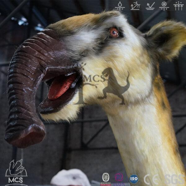 During the restoration of the paleontological models of the Ice Age, the appearance of the Macrauchenia beast is very strange, similar to the camel, but there is no hump.  This prehistoric animatronic animal model is based on the recent paleontological discovery, its characteristics are the long nose, three toes, Paying attention to these details, we refer to the Ice Age documentary, and set the natural creature structure in the action programming part of the nose. The whole head structure is very flexible. To present the realistic appearance of the Macrauchenia in the prehistoric era of South America.