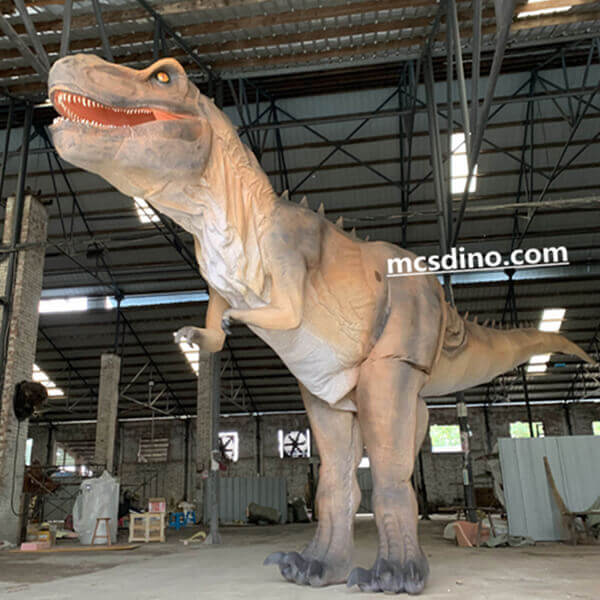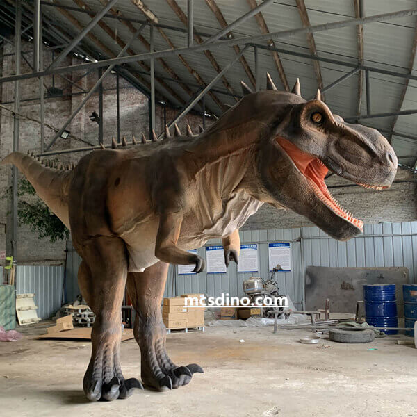This mega Trex suit is specially designed for musical theatre shows. This giant dinosaur costume stands up to 3m high, and the performer needs to wear 60cm high stilts. We focus on more realism in the painting of the dinosaur costume skin, close to the natural brown color. The front and rear weights are balanced, relying on the principle of leverage. Making the suit weight is affordable. This Tyrannosaurus rex looks very huge on the stage. Its head is very flexible and can operate many movements such as opening and closing the mouth and patrolling left and right. Let your Jurassic-themed stage show own this unparalleled giant Tyrannosaurus costume.