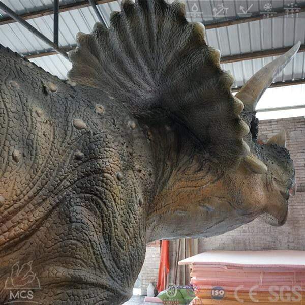 This will be the most attractive tourist attraction with placing this full size 32 foot long,13ft tall animatronic Triceratops, Giant animated Triceratops which will be a new Dinosaur attraction complement the existing dinosaurs at the client's the park. The movable Dinosaur model Triceratops' eyes, tail and mouth, and head all move to create a decidedly lifelike effect. Been through 40days we were working on to create a lifelike Triceratops model. and finally, MCSDINO successfully brings this giant walking Cretaceous herbivore back to life in front of you.