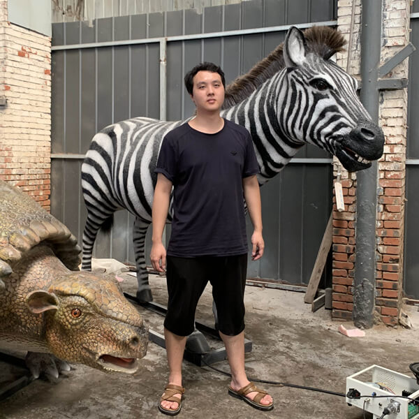 MCSDINO built this lifelike zebra robot within 1 month. The neat and elegant black-brown and white stripes on this animatronic zebra are painted by hand. Our artists implanted a mane on the back of the zebra animatronic. and the animal sculpture part, we gave it ears like donkeys. We use the electronic mainboard to program the robotic zebra's related actions. Make this animatronic animal come to life.