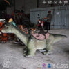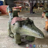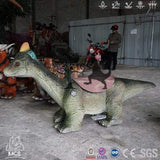 Time to play the ride-on Apatosaurus game. This is a battery-operated amusement kiddie ride that is handcrafted by MCSDINO. The whole Dinosaur appearance follows the appearance of the real Dinosaur. Apatosaurus scooter is equipped with a rechargeable battery and has 4 wheels. Dinosaur scooters are safe and easy to operate, just press the button and twist the handgrip. The Apatosaurus ride can go forward, turn left, and right with electric power along with the alive Dinosaur roar. And the very cute and the games can attract the attention of both kids and adults! Small investment and quick return for playground business.