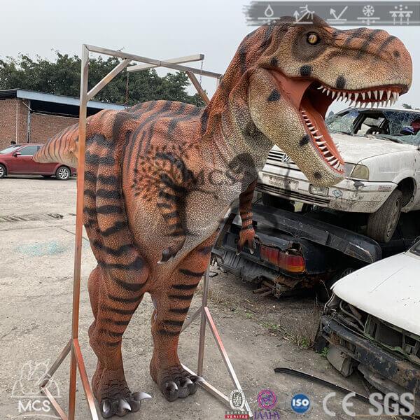 Dramático disfraz de tiranosaurio con piernas ocultas fabricado por MCSDINO. Sobre el color de la piel de los dinosaurios, la gente siempre tiene una imaginación ilimitada. El diseño conceptual del disfraz de T-Rex proviene del patrón de piel del tigre del rey del bosque. La piel a rayas de tigre no solo está integrada con el entorno circundante en el bosque, sino también con el patrón. Al dividir la forma del tigre en el fondo circundante, no es fácil ser descubierto por la presa. Pintamos la piel del disfraz de Tyrannosaurus Rex con el color del patrón de rayas de tigre, la maravillosa conexión, ¡y el Rey Cretácico tiene la textura del tigre! Actualizamos el diseño de las piernas del disfraz, cambiando las piernas previamente rígidas y gordas, resaltando los músculos de la pierna del Tiranosaurio y el uso más flexible y cómodo. Nuestra ropa de dinosaurio siempre está dedicada a brindar más impacto visual y entretenimiento a la audiencia. ¡Dando gran popularidad a su negocio de alquiler de dinosaurios para los diversos eventos festivos!