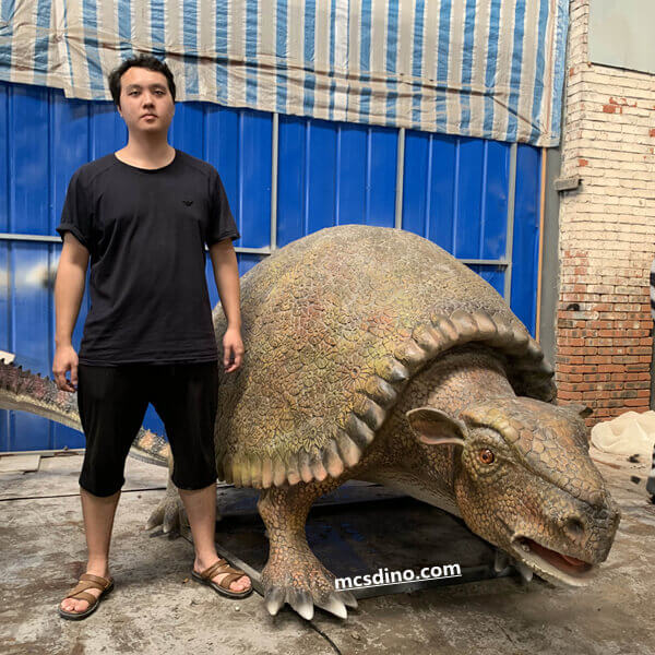 Il faut 1 mois pour fabriquer un glyptodon animatronique. La coquille du glyptodon est composée de nombreux petits morceaux. En cours de sculpture, nous dessinons petit à petit ces carrés géométriques intéressants. Il ressemble à un tatou et vit principalement en Amérique du Sud préhistorique. Glyptodon était un château mobile à l'époque glaciaire. L’apparence unique de cet animal animatronique impressionne tellement les gens. Le modèle animatronique du glyptodon mesure 1,5 m de haut. Vous pouvez vous référer aux photos comparatives que nous avons prises du glyptodon avec des humains.