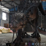 This robotic red-eyed dragon opened his eyes in the dark, roaring and spitting out the smoke. Giant fire dragon model swayed his tail slightly and smacked his wings, ready to attack the invading humans at any time. This dragon combines many interesting elements, flashing eyes when angry. Use motors and Arduinos to control this giant animatronic monster. Our workshop developed a custom control box to record the positions into the system step by step from the program routine and when play it act as real. Bring your visitors a thrilling visual experience.