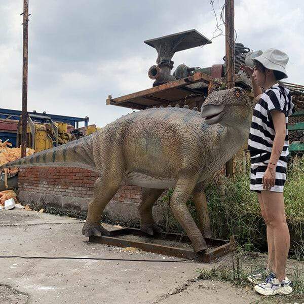 The whole process of our team making the Iguanodon animatronic model is very smooth. The dynamic of the Iguanodon sculpture is the posture of standing and neck turning back. It seems to be calling other companions to move forward in search of more abundant grassland. The coloring of animatronic Iguanodon is also natural markings, which is very suitable for dinosaur theme parks.